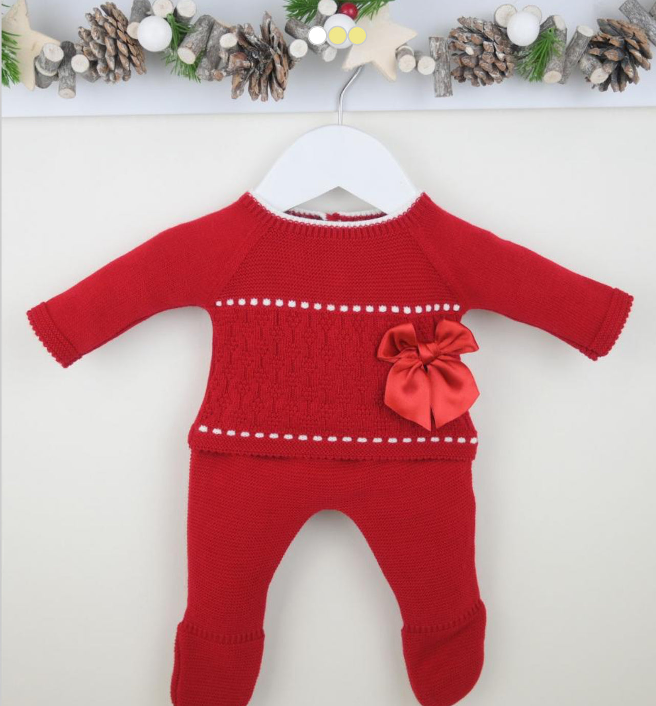 Long sleeve knit top with back button fastening Fancy knit finishes with contrast detailing and satin bow.